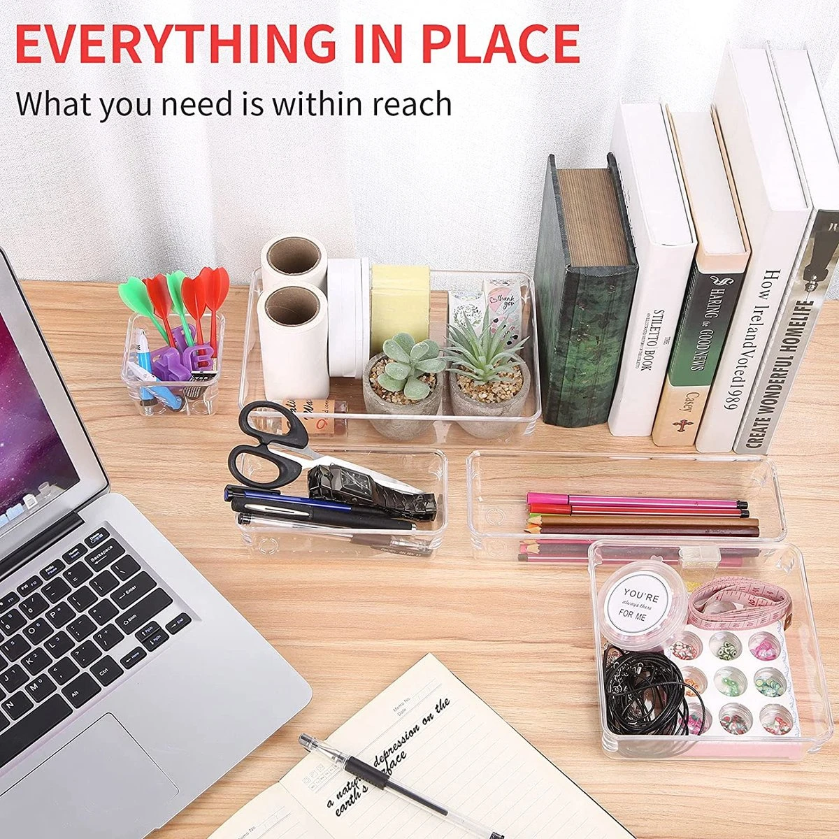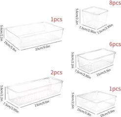 Aokyom Make-uporganizer, 18 Stuks, Kunststof Opbergdozen Voor Kantoor, Lades, Organizer, Lade-organizer, Doorzichtige Lade-inzet Voor Bureau, Keuken, Badkamer