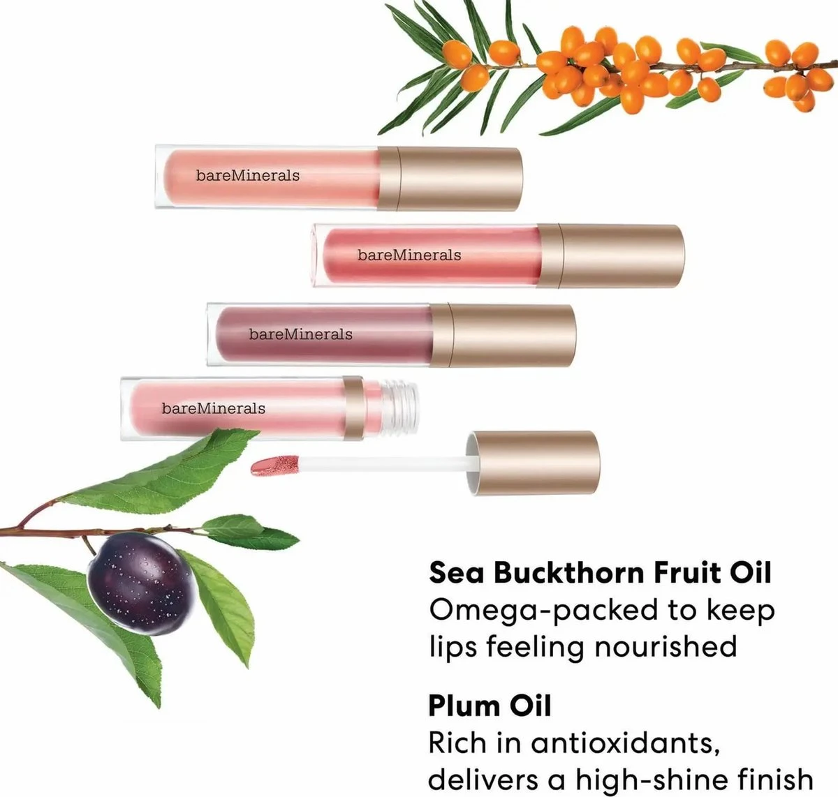 Een pure, vegan lipgloss-balsem van bareMinerals die de glans van een gloss combineert met het comfort en de hydratatie van een balsem.