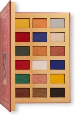 Het I Heart Revolution Snow White / Sneeuwwitje Fairytale Books Palette is een alles-in-één palette met zowel tinten voor je gezicht als je ogen. Open het Fairytale Books palette om een pagina met matte en glanzende eyeshadows te onthullen, van betoverend goud tot rozerood en intens blauw.