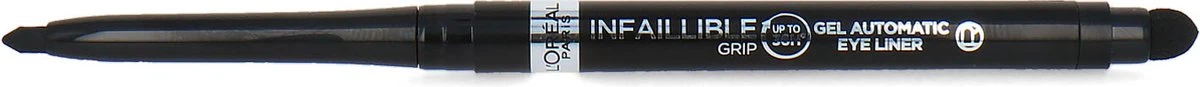 De L’Oréal Paris Infaillible 36H Grip Gel Eyeliner is een opdraaibaar gelpotlood met een handige sponsapplicator. Dankzij de romige textuur die gemakkelijk over de huid glijdt kun je het uitschuifbare potlood comfortabel en precies aanbrengen. De speciale gelformule blijft de hele dag goed zitten. De kleur loopt niet uit, vervaagt niet en is waterproof. Met de handige ingebouwde sponsapplicator creëer je gemakkelijk een smokey eye look. Het potlood kan geslepen worden met de ingebouwde puntenslijper die aan de achterkant van de sponsapplicator vastzit.