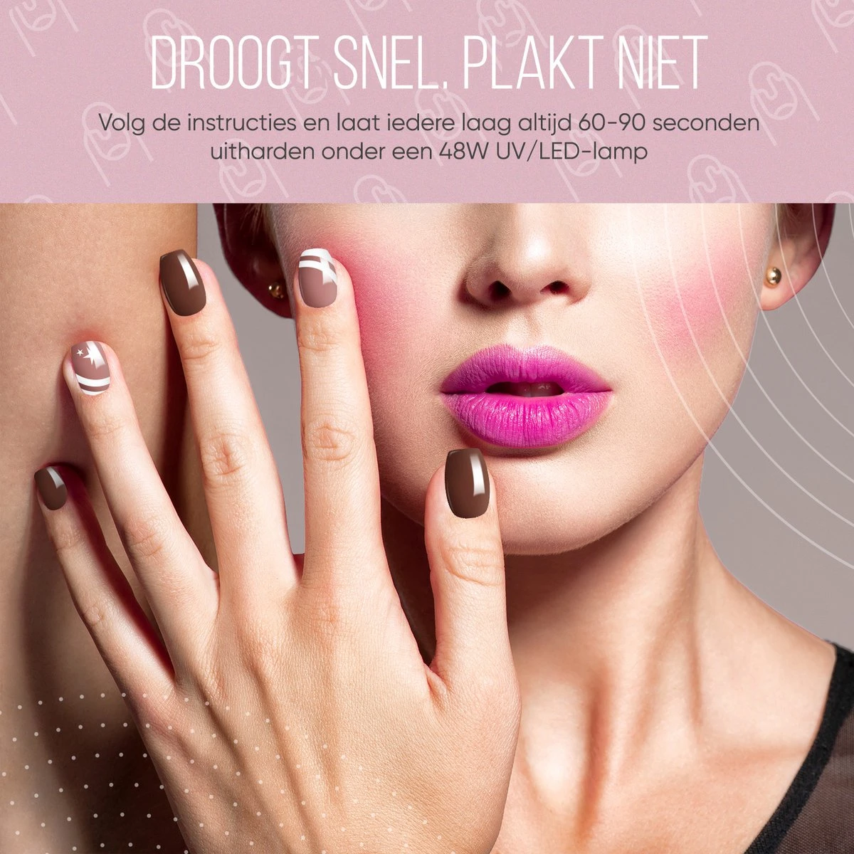 Lak. Droog. Versier. Zo heb je in een handomdraai de mooiste nagels en de prachtigste versieringen. Volg de instructies en laat iedere laag altijd eerst 60-90 seconden uitharden onder een 48W UV/LED-lamp. Op die manier geniet je het langst van de prachtige dekking en briljante hold. Welke kleur ga jij als eerste uitproberen?