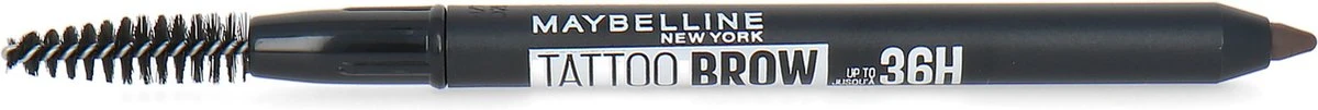 Creëer gemakkelijk gevormde, ingekleurde wenkbrauwen met het Tattoo Brow Up to 36H wenkbrauwpotlood van Maybelline. Met het potlood worden gaatjes in de wenkbrauwen gemakkelijk ingekleurd en kan de wenkbrauwvorm gevormd worden door deze te tekenen. Het borsteltje geeft je een extra tool om de wenkbrauw in vorm te brengen of de scherpe lijnen wat te verzachten. Het potlood is intens gepigmenteerd voor een impactvol, natuurlijk ogend resultaat. Daarbij is het potlood waterproof, vlekt het niet en geeft het niet af voor een perfect resultaat wat tot 36 uur blijft zitten.*