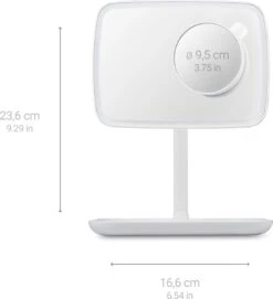 • Incl. verwijderbare vergrotende spiegel – kan eenvoudig aan de voor- of achterkant van de spiegel gemonteerd worden