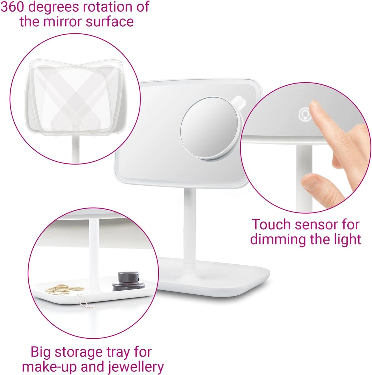 Verder beschikt de spiegel over een groot opbergbakje voor je dagelijkse make-up en sieraden, zo heb je deze snel & eenvoudig bij de hand.