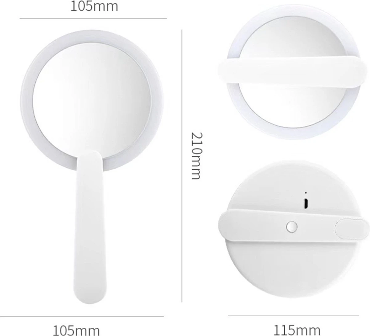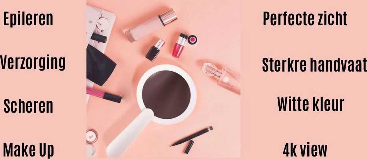 Voor je dagelijks verzorging wordt deze handspiegel aangeboden. Onze spiegel is voorzien van natuurlijk licht dankzij de led verlichting omheen. Met een batterij die minimaal 3 uur lang duurt en charge-cable. Wat toff! Maakt je werk makkelijker en sneller. Met de handvat die 360 graden draait kunt u voortaan makkelijk alle kleine onmisbare details bekijken. Geen haartjes meer missen en blijf up to date waar en wanneer jij wilt.