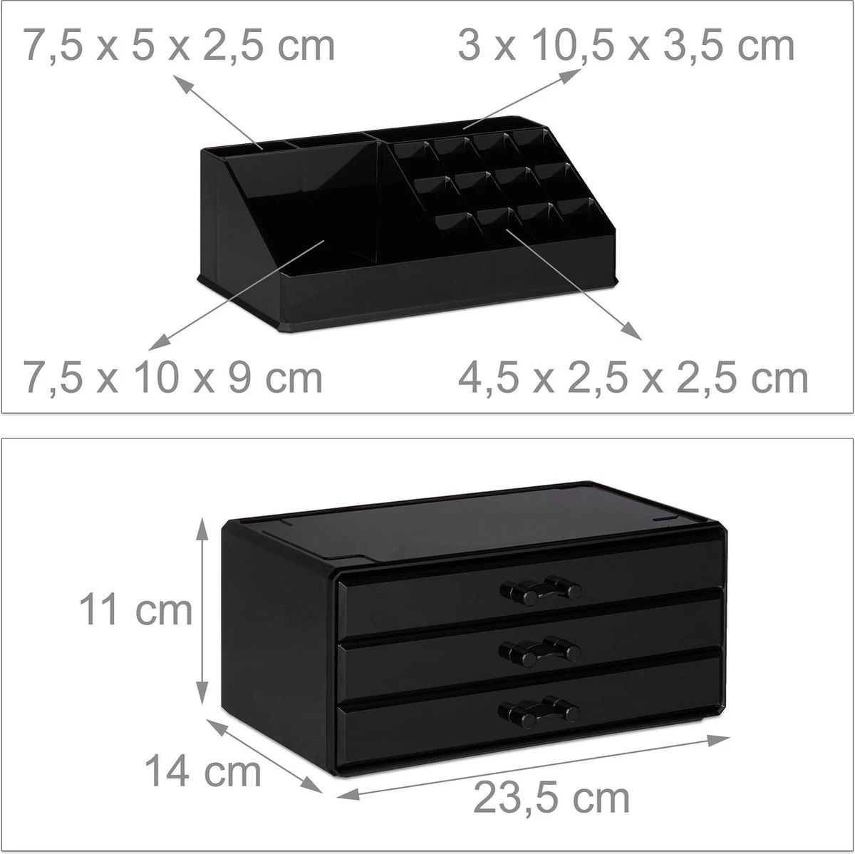 • 1x make-up organizer (comsetica houder en box met 3 lades)