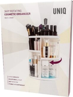 Houd al je schoonheidsproducten bij met de roterende beauty organizer van UNIQ. Praktische en stijlvolle make-up organizer die 360 graden kan draaien – en gemakkelijk plaats biedt aan 80 cosmetica of huidverzorgingsproducten.