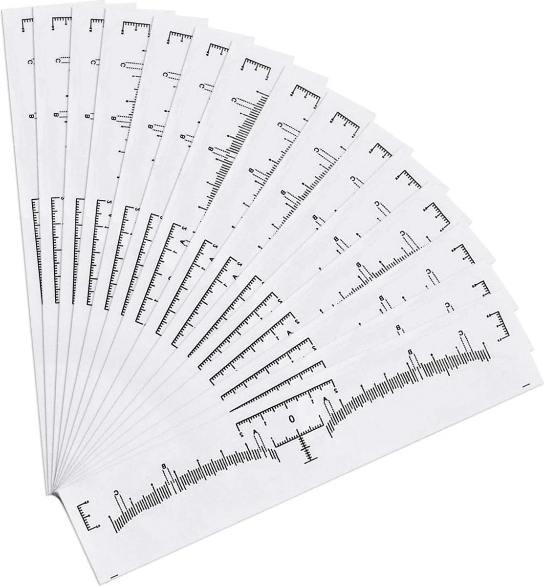 Wenkbrauw liniaal voor het perfect opmeten van wenkbrauwen, Geschikt voor Microblading, Henna Brows en Permanente Make-Up. Verpakking van 50 stuks zelfklevende linialen.